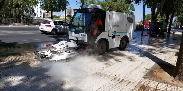 El Ayuntamiento de Sevilla, a través de la empresa de municipal de limpieza, Lipasam, ha puesto en marcha hoy un nuevo servicio de limpieza con agua caliente a presión, que estará en funcionamiento los próximos meses. Se trata de dos equipos que van a realizar un tratamiento de limpieza con vehículo decapadora/fregadora, dotada de un trabajador, empleando agua caliente a alta presión, un servicio nunca antes realizado.