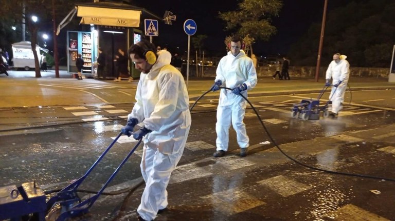 Por otra parte, caben destacar los trabajos de retirada de cartelería y adhesivos en paredes, farolas y demás mobiliario urbano, realizados los días previos en el Distrito Casco Antiguo, diferentes barrios de la ciudad y zonas de acceso.